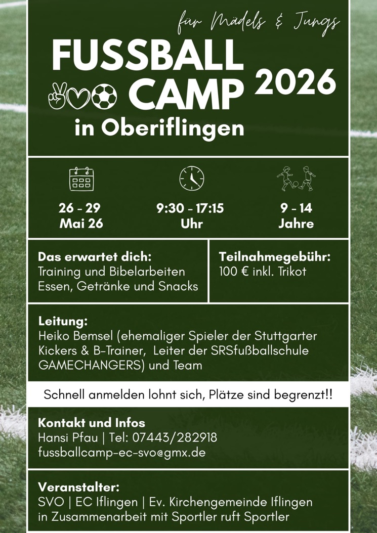 vom 26.05.2026 bis 29.05.2026Das erwartet dich: Training und Bibelarbeiten sowie Essen, Getränke und Snacks.