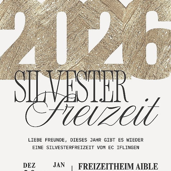 vom 30.12.2025 bis 01.01.2026Du möchtest ein tolles Silvester erleben? Dann melde dich für die Silvesterfreizeit vom EC Oberiflingen an.